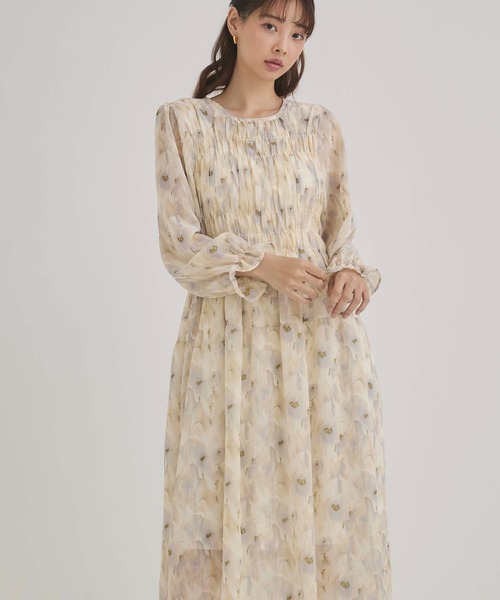 淡い色合いがたまらないシャーリングワンピース水彩絵の具で描いたような淡い色合いのフラワー柄がたまらないシャーリングワンピースです。ふんわりした印象を持たせつつ、ギャザーをして美しいシルエットに仕上げています。カーディガンやジャケットとの合わせなどもおすすめです。------------------透け感:あり生地の厚さ:薄手裏地:あり伸縮性:なしポケット:なし------------------※撮影時のライティング、PCやスマートフォンの環境により写真の色味が実際の商品と異なって見える場合がございます。ご了承の上お買い求め下さいませ。※モデル着用画像は実際の色と多少異なる場合がございますのでマネキン画像をご確認ください。《 お知らせ 》▼商品のお気に入り登録お気に入りアイテムの値下げ・再入荷・在庫1点などの通知を受け取ることができます。▼ブランドのお気に入り登録新商品や再入荷、セール、クーポン配布などお得な情報を受け取ることができます。 ※ご注文いただいた予約商品のお届け時期の確認は、注文履歴ページより行えます。