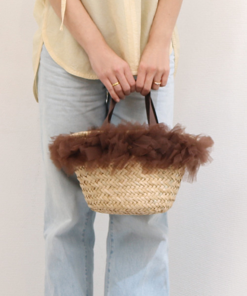 カカトゥ kakatoo / チュールフリンジカゴバッグ■デザイン&ポイントバレエのチュチュを連想させるフリルがゴージャスなかごバッグ。持つだけでコーディネートにインパクトをプラスしてくれるアイテムです。長財布、500mlボトルなどが入り、口元は巾着仕様なので中身が見えず安心のつくりです。■アテンション・ハンドメイドで生産をしているた為、本体の編み終わり部分に段差やサイズ・かたちに若干の違いが生じます。・素材特有のにおいがする場合がございます。においが気になる場合は一度陰干しをされた上でご使用ください。・商品の画像は光の照射や角度、ご利用のモニターやブラウザにより実物と色味が異なる場合があります。・口元のチュールは縫い止めをしておりませんので、片方を引っ張ると抜けてしまう場合がございます。こちらは商品の仕様となりますので抜けてしまった場合は再度カゴに差し込んで長さを調整をして下さい。■ブランドコンセプト-- kakatoo / カカトゥ --カカトゥとはオーストラリアの原語で「おいしい」を意味する言葉。カカトゥという躍動感がありながらも、かわいらしい響きを感じるブランドネームの通り、日常の生活に少しの遊び心とチャーミングな色彩りを加えるバッグを展開。シンプルな中にもフェミニンな要素をさり気なく取り入れる大人の女性の為のブランド。■商品のお気に入り登録をお願いします【カートに入れる】横のハートマークをクリック再入荷やラスト1点のお知らせ、セール情報などのお知らせを受け取ることができます■下記の品番をお申し付け下さい。品番:70-00-00351バッグ バック かばん トートバッグ 手提げ カゴバッグ かごバッグ レディース アンビリオン unbillion カカトゥ kakatoo 700000351