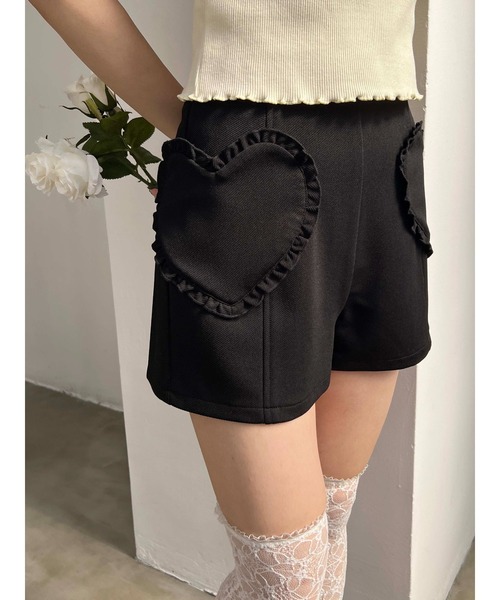 コンパクトなシルエットが超スッキリ見え◎キレイ目にも着こなせるガーリーなショートパンツ登場////フロントはフリルで縁取りしたハート型のポケットでアクセント!バックはファスナー仕様でもたつかず、後ろ姿もきれいに。ブラウスやフリルで大人ガーリーなスタイルはもちろん、シャツやタイトなトップスできれいめコーデにも着まわせます。▼便利なお気に入り登録商品のお気に入り登録で、再入荷の通知・ラスト1点・お得なセールの通知を受け取ることができます。ブランドのお気に入り登録で、新商品や再入荷など、さらにお得な通知を受け取れます。《Attention》・撮影はサンプル品を使用しており、実際の商品とは仕様や加工・サイズ等が若干異なる場合がございます。・撮影場所や照明の照射・角度、お使いのモニター環境により色味や仕様、加工、カラーが若干異なる場合がございます。・商品によっては1〜3cm程度の採寸誤差がある場合がございます。・移染等防止のため水や汗で濡れたまま放置することは避けて頂き、濃色アイテムは単体でのお洗濯をお願い致します。・素材臭がある場合は陰干しをお願いいたします。・アテンションタグを必ずご確認の上ご使用下さい。