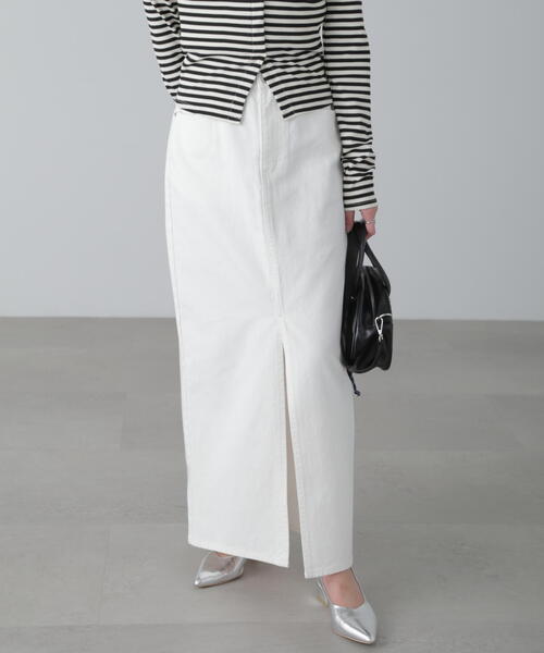 【最強オトナっぽデニム】 (fabric&design) ◆素材/トレンド感のあるカラー展開 ◆デザイン/どんな体形の方でも履きやすいシルエットカジュアルでもきれいめでも着回しがきくシルエット・ほどよい深さのスリットがスタイリングがきまりやすい (styling) コンパクトシルエットのトップス(フロッキーカットソーやシアーニット)が◎ ■透け感:なし ■生地の厚さ:普通 ■裏地:なし ■伸縮性:ややあり ■光沢:なし ■シルエット:スタンダード --------------------------------------------------- ◆商品のお気に入り登録◆ お気に入りアイテムの値下げ・再入荷・在庫1点などの通知を受け取ることができます。 ◆ブランドのお気に入り登録◆ 新商品や再入荷、セール、クーポン配布などお得な情報を受け取ることができます。 ---------------------------------------------------