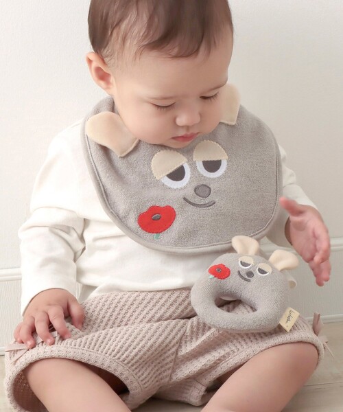 世界中で親しまれているレオ・レオニの絵本「フレデリック」をモチーフにしたラトルです。 ねずみのフレデリックの形をした愛らしいデザイン。トロンとした目や右上がりな口元が丁寧に表現されており、赤いポピーのお花がアクセントになっています。 握ることを覚え始めた赤ちゃんの遊び相手にぴったりなラトル。振るとやさしい音が鳴って赤ちゃんの触覚や聴覚を刺激します。ふんわりソフトなパイル生地を使用しており、手ざわりの良さも魅力です。 同じシリーズのスタイやソックスなども展開しているので、組み合わせてギフトとして贈るのもおすすめですよ。 Illustrator | LEO LIONNI(レオ・レオニ) 1910年オランダ アムステルダム生まれ。イラストレーター、グラフィックデザイナー、および絵本作家として、米国でもっとも活躍した芸術家のひとり。「あおくんときいろちゃん」「スイミー」「フレデリック」「アレクサンダとぜんまいねずみ」3作品でカルデコット賞を受賞。その他にも米国、ドイツなどで多くの賞を受賞しています。 長時間のつけ置き又は、濡れたまま放置はしないでください。サイズや仕上がりが1点ずつ多少異なります。 縦11.5cm/横9cm/厚み3cm
