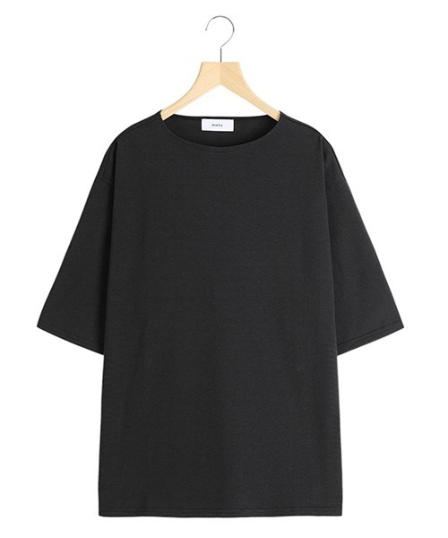 markaの名作バスクシャツが新たにリニューアルして登場【デザイン】・毎シーズン人気の高いmarkaの半袖バスクシャツが新たにリニューアルされて登場・シルエットは微調整を行い、ファブリックにはこれまで使用してきたものと比べて柔らかい生地へ変更され、より着心地にフォーカスした仕上がりになっている・バスクシャツの代名詞であるボートネックのデザインは、一枚での着用を考慮してあえてコンパクトに設計し、インナーを気にせず着用することが可能となり、ボートネックデザインが苦手な方にもトライしやすい一着・度詰めに編みたてられたコットン天竺のボディは適度なハリ感、ドレープ感で上品な雰囲気を演出してくれる【素材】・オーガニックコットンを使用した度詰めのコットン天竺・毛羽の少ないBD天竺は、気温の高い日にも肌ばなれが良く、シャリっとした生地感が特徴の30番手空紡糸を使用・引き揃えといって細い糸を並べてしっかりさせているため、ハリ感のある生地になっている【シルエット・サイズ】・身幅、袖幅を広く取ったワイドシルエット・普段のサイズ選びでもゆったりとしたシルエットになり、サイズを上げて着用することで、バスクシャツの特徴をより強調した着こなしが可能【商品画像について】・閲覧環境や撮影環境による光の違いにより、掲載画像は実際の色と異なって見える場合がございます。(商品の色調は白背景の商品単体画像をご参照ください。)