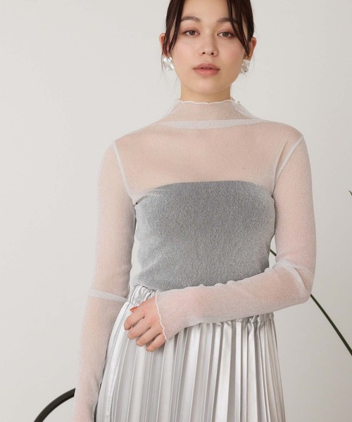 ラメ感が華やかなシアーハイネックトップス キラキラとしたラメ感が華やかな印象のハイネックトップス。ほどよい透け感のあるシアー素材に、フリルのようなメロウが女性らしさを演出してくれます。一枚着としてはもちろん、キャミワンピースやサロペットのインナーとしても活躍するアイテムです。 ------------------ 透け感:あり 生地の厚さ:薄手 裏地:なし 伸縮性:あり ------------------ #きれいめカジュアル #大人カジュアル #レイヤードスタイル #シアーインナー ▼ATTENTION▼ ※摩擦や汗、雨等で濡れた場合、他の衣料に色移りする場合がございますのでご注意下さい。 ※撮影時のライティング、PCやスマートフォンの環境により写真の色味が実際の商品と異なって見える場合がございます。ご了承の上お買い求め下さいませ。 ※モデル着用画像は実際の色と多少異なる場合がございますのでマネキン画像をご確認ください。 ※製造過程や素材により染料等の臭いが強い場合がございます。臭いが気になる場合は一度陰干しされてからご使用下さい。 ※着用衣装はすべて参考商品です。 ―――――――――― 《お買い物をもっと楽しむために!》 ■商品のお気に入り登録 お気に入りの商品やカラーを登録していただくと 値下げ・在庫1点・完売後の再入荷などの通知を随時受け取ることができます。 ■ブランドのお気に入り登録 新商品の発売や再入荷、セール、クーポン配布など EditSheenのお得な情報を受け取ることができます。