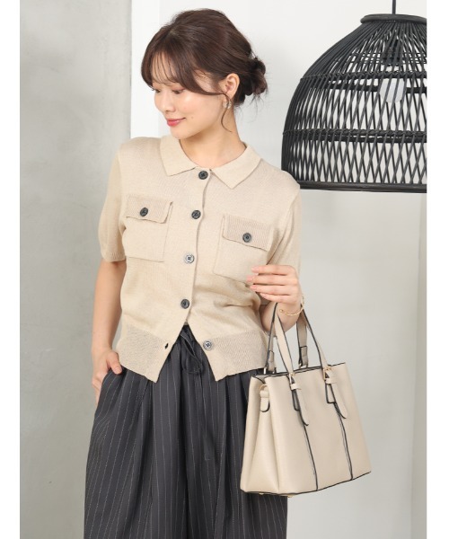 クラシックな衿付きデザインが魅力の半袖ニットカーディガン 衿付きデザインがクラシックな印象を与える、半袖のニットカーディガン。コンパクトなシルエットで、ボリュームのあるボトムスともバランス良く合わせられます。カジュアルにもきれいめにも合わせやすく、幅広いスタイリングに活躍するアイテムです。 ------------------ 透け感:ややあり 生地の厚さ:薄手 裏地:なし 伸縮性:ややあり ------------------ #きれいめカジュアル #大人カジュアル #通勤コーデ #オフィスカジュアル #半袖カーディガン ▼ATTENTION▼ ※摩擦や汗、雨等で濡れた場合、他の衣料に色移りする場合がございますのでご注意下さい。 ※撮影時のライティング、PCやスマートフォンの環境により写真の色味が実際の商品と異なって見える場合がございます。ご了承の上お買い求め下さいませ。 ※モデル着用画像は実際の色と多少異なる場合がございますのでマネキン画像をご確認ください。 ※製造過程や素材により染料等の臭いが強い場合がございます。臭いが気になる場合は一度陰干しされてからご使用下さい。 ※着用衣装はすべて参考商品です。 ―――――――――― 《お買い物をもっと楽しむために!》 ■商品のお気に入り登録 お気に入りの商品やカラーを登録していただくと 値下げ・在庫1点・完売後の再入荷などの通知を随時受け取ることができます。 ■ブランドのお気に入り登録 新商品の発売や再入荷、セール、クーポン配布など EditSheenのお得な情報を受け取ることができます。