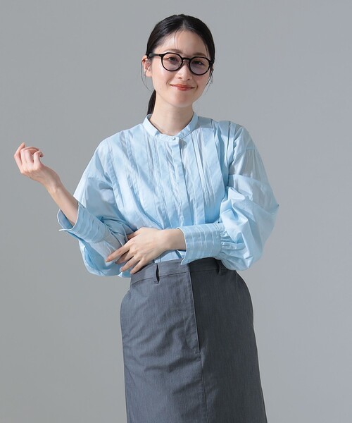万能なベーシックアイテム ■ デザイン オンオフ兼用でデイリースタイルに取り入れたい1枚。シンプルながらもタックがランダムに施された、表情豊かなデザインです。 ■ コーディネート スラックスからデニムパンツまで幅広いボトムスと好相性。ジャケットなどの羽織りを前開きで着た際に覗くタックデザインアクセントに。 ■ サイズ 身幅は程良くゆとりのあるしなやかなAラインシルエット。 ■ 素材 柔らかなコットンを使用し、さりげない透け感で涼しげな印象に仕上げました。 ■ ケア方法 手洗い可(詳細は商品についている品質表示ラベルをご覧ください) Model: 【WHITE】BEAMS STAFF:H163 Size:38 【SAX】H159 B74 W58 H81 Size:38 ********************** 生地の厚さ:やや薄手 透け感:ややあり 伸縮性:なし 光沢感:なし 裏地:なし ********************** ※光の当たり具合やパソコンなどの閲覧環境によって実際の色味と異なって見える場合がございます。予めご了承ください。 ※商品の色味は商品単体で撮影した画像をご参照ください。