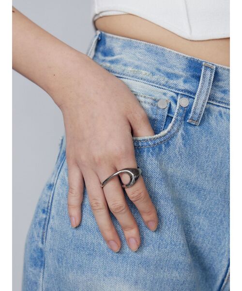 変形デザインでオシャレ見えするリング■デザインオリジナルで型を起こして作成したツーフィンガーリングです。存在感がありながら、大人の雰囲気も併せ持ったおすすめアイテム。シンプルですがエッジが効いたデザインで今季らしさもあります。太さの強弱があることで重厚感もあります。春夏のさらっとした着こなしにプラスすることでアクセントになります。※着用画像はフラッシュの加減で実際の製品と色味等が異なる場合がございますので、生地のズームアップ画像をご確認ください。※ご利用の端末画面の設定により実際の商品と色味が異なる場合がございます。