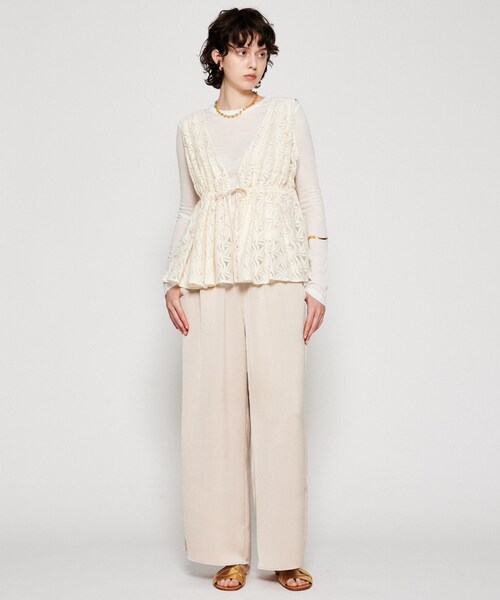 一枚取り入れて、コーディネートが華やぐフラワーレーストップス 【デザイン】 ・繊細なフラワーレースとドロストデザインで女性らしさ溢れる一着。 ・ウエストの絞りでメリハリをプラスしつつ、柔らかいシルエットが楽しめるデザイン。 ・程よくゆとりのあるシルエットで、体に上品に沿うサイズ感。 【素材】 ・柔らかで肌触りの良い素材感。 ※手洗い可 【着こなしポイント】 ・ワンピースの上にプラスするだけで、華やぎとお洒落度がぐっとアップ。 ・ロンTなどカジュアルアイテムを選ぶと甘くなりすぎず、大人に馴染むデザイン。 ・インナーの合わせ方次第で、キレイめシーンにも活躍できるデザイン。 ーーーーーーーーーーーーーーーーーーー 気になるアイテムはお気に入り登録がおすすめ! お気に入り登録で、再入荷通知やお値下げ情報をお知らせ。 お得な情報をいち早くお届けいたします! アイテムページにある、ハートマークをクリックして追加できます。 ーーーーーーーーーーーーーーーーーーー ※照明の関係により、実際よりも色味が違って見える場合があります。また、パソコン・スマートフォンなどの環境により、若干製品と画像のカラーが異なる場合もございます。 店舗へのお問い合わせ商品番号:R91-82029 ●製品寸法: 02(M):着丈53cm 肩幅43cm 備考: