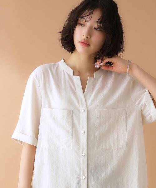 【近藤千尋さん着用!】 ■ポイント/詳細 タンブラー加工を施した素材感が魅力のスキッパーシャツで、金釦のWポケットデザインが特徴です。 程よくゆったりとしたシルエットで、洗練された印象です。 5分袖の絶妙な丈感は、季節を問わず快適に着用できる便利なアイテムです。 ■素材/機能性 独自のタンブラー加工により、柔らかく、ナチュラルな風合いを持った素材感が特徴です。 さらりとした肌触りでありながら、しっかりとした生地感があり、長時間の着用でも快適さをキープします。 シワになりにくく、お手入れも簡単です。 環境に優しいサスティナブル素材を使用しています。 ■おすすめスタイリング スリムなボトムスやタイトスカートと組み合わせることで、上品な印象を楽しむことができます。 ウエストを少しインして着ることでスタイルにメリハリが生まれ、バランスの取れたコーディネートで着こなし頂けます。 カジュアルなデニムと合わせれば、リラックスした雰囲気を楽しむことも可能です。 __________________________________________________ ■スタッフレビュー 年齢:30代/身長:155cm/体型:普通/普段のサイズ:S~M/着用サイズ:M Mサイズで全体的にゆとりがあり、袖は肘くらい、裾はおしりがすっぽり隠れます。肌に張り付かないさらっとした軽い素材です。 年齢:30代/身長:160cm/体型:やせ型/普段のサイズ:M/着用サイズ:M 首元すっきり&身幅はゆったり、後ろの着丈が長くてキレイに体型カバーできます。夏向けのつるんとした素材です。 **************************** 【骨格タイプ別おすすめスタイリング】 ■ストレートタイプ 体のラインを強調するフィットしたスタイルが似合います。 細身のパンツやスカートでスッキリとしたシルエットでまとめて!ウエストタックインですっきり見せると、ボディラインがきれいに見えて効果的です。 ■ウェーブタイプ 柔らかい素材や雰囲気のスタイルが似合います。 フレアスカートやAラインのスカートを モデル情報:身長166cm B72 W62 H86 着用サイズ:12(M) 店舗へのお問い合わせ商品番号:040-82033 ●製品寸法: 12(M):着丈67cm B120cm 袖丈27cm 肩幅46cm 13(L):着丈69cm B123cm 袖丈27cm 肩幅47cm 備考: