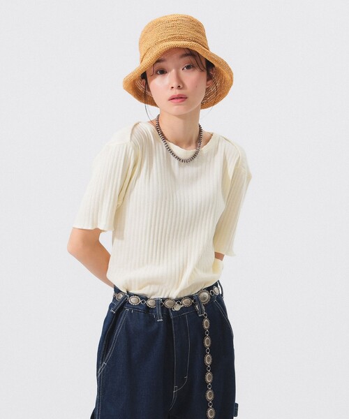 後ろ姿を見せたくなるデザイン ■デザイン 今シーズンのキーワードでもある「マリン」を表現する、〈BEAMS BOY(ビームス ボーイ)〉らしい遊び心のあるTシャツが登場。レイヤードした際に襟がポイントになるように、セーラーカラーディテールを落とし込みました。ネック周りのパイピング切り替えや、袖の振りステッチもポイント。粗野感のある柔らかい生地感で、重ね着した際もストレスなく着ていただける着心地です。 ■コーディネート ワンピースやベストなどとのレイヤードがおすすめ。 ■サイズ インナー向きの大きすぎないサイズ感ですが、ストレッチ性があります。 ■素材 落ち綿を使用し、糸自体にナチュラルなムラがあり、ヴィンテージ感を表現。希少なジャガード編み機で柄組みをして編んだ生地を使用。 ■ケア方法 洗濯可(詳細は商品についている品質表示ラベルをご覧ください) 【OFF WHITE】BEAMS STAFF:H159 Size:ONE SIZE 【T,GREY・LT.YELLOW】Model : H161 B76 W60 H82 Size : ONE SIZE ※アイテムサイズは商品サンプルを採寸しているため、実際の商品と多少の誤差が生じる場合がございます。 ※画像の商品はサンプルのため、実際の商品と「仕様」「色味」が異なる場合がございます。