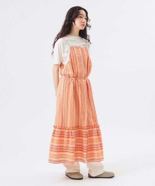 夏に映えるカラーリング ■デザイン 昨年人気だったキャミソール型ワンピースをベースに、新しいデザインで作製。ストライプが爽やかな印象を与えます。肩紐は出来るだけ華奢に見えるような細めに設定し、また前後どちらでも着用していただける仕様になっています。 ■コーディネート Tシャツやカットソーをインナーに仕込んでいただくのがおすすめ。前開きなのでフロントの開き次第でいろんなレイヤードスタイルを楽しめます。 ■サイズ 身幅はゆとりがあり、丈感はやや長めです。 ■素材 異なる糸を組み合わせることで、独特の凹凸感やサッカー調の風合いを表現。また30年前の織機を使用することで、糸本来の膨らみ感を活かし、当時の雰囲気を再現しています。 ■ケア方法 手洗い可(詳細は商品についている品質表示ラベルをご覧ください) 【PINK】Model : H164 B72 W59 H85 Size : ONE SIZE 【BLUE】BEAMS STAFF:H162 Size:ONE SIZE ※アイテムサイズは商品サンプルを採寸しているため、実際の商品と多少の誤差が生じる場合がございます。 ※画像の商品はサンプルのため、実際の商品と「仕様」「色味」が異なる場合がございます。