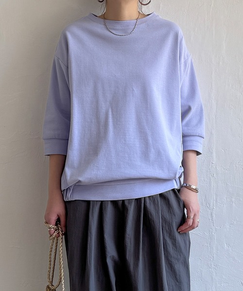丸みをおびたコクーンシルエットが魅力のプルオーバー。 異素材切り替えデザインで、これ1枚でサマになります。 【素材】 前身はカットソー生地、後ろはナイロンの異素材切り替えです。 【デザイン】 丸みをおびたコクーンシルエットがポイント。 季節の変わり目に活躍する5分袖です。 【ポイント】 1枚でサマになる異素材切替プルオーバー。 バックスタイルもタックと裾ゴム使いでこだわり、コクーンシルエットに仕上げています。 前身の切り替えもやや前にふっておりウエスト周りもスッキリ見えます。