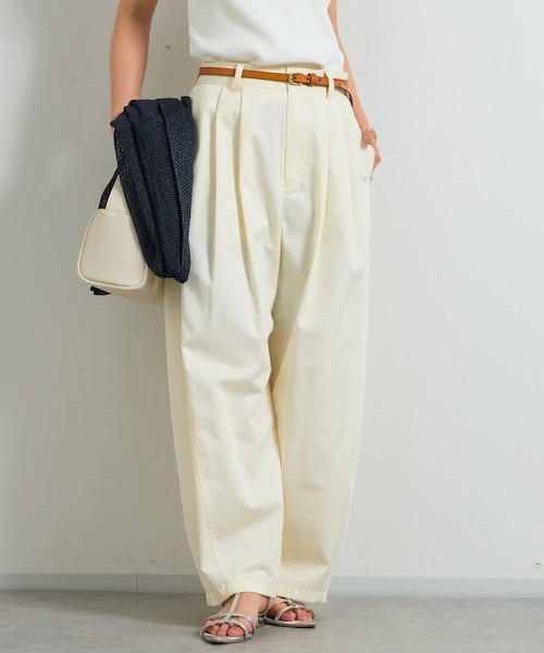 【商品ポイント】・2タックデザインで、股上が深めのリラックス感のあるワイドシルエットが魅力。・程よいハリ感がありシルエットをキレイに見せてくれます。・トップスをインするとメリハリがでておすすめです。【素材】ポリエステル65%綿35%洗濯方法:洗濯機可透け感:なし裏地:なし伸縮性:なし【骨格タイプ】骨格ストレート:全体的に立体型で筋肉質。ひざ下はすらっと細め。ボディラインにメリハリがある。骨格ウェーブ:上半身が薄く、華奢。緩やかな曲線のボディライン。下半身に重心があり女性らしい体型。骨格ナチュラル:筋肉や脂肪があまり感じられない体型。腰の位置が高く骨や関節が目立ちやすい。--------------------------------------------------------------------------------【注意点】※画像の商品は光の照射や角度、お使いのモニター環境により、実物と色味が異なる場合がございます。※入荷状況により、お届け予定が前後する場合があります。※工場の生産の都合上、納期が変更になる場合がございます。検品や輸送の関係で、発送日が前後しますのでご了承ください。 また、入荷状況により、お客様への発送が店頭販売より遅れる場合もございます。※追加生産商品は、一部の店舗、通販で販売中の場合がございます。予めご了承下さい。※サンプルでの撮影、計測をしております。商品の仕様が一部変更になる場合がございます。※撮影サンプル品はブランドタグがついておりません。製品にはタグがつきますので、製品の表に縫い糸が見える場合がございます。--------------------------------------------------------------------------------【お買い物をもっと便利に楽しく♪】『ハート』をクリックでお気に入り登録〇「商品のお気に入り登録」で・・・ ラスト1点や再入荷の通知が届きます。登録して頂いた商品だけが対象となる、あなただけのタイムセールが開催されることも!〇「ブランドのお気に入り登録」で・・・ 新商品や再入荷など、いち早くブランドのお得な情報を受け取ることができますので、ご登録をおすすめします!--------------------------------------------------------------------------------