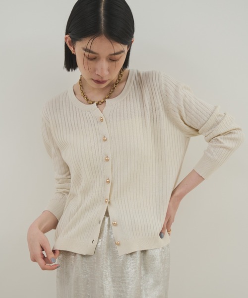 【Shelly island /シェリーアイランド】 秋冬に大人気のデザインが、春で登場! 《detail》 ・エレガントさとカジュアルさを両立させたゴールドボタンリブニットカーディガン。 ・上品なリブ編みのデザインが、フィット感のある美しいシルエットを作り出し、体のラインを程よく引き立てます。 ・フロントに施されたゴールドボタンが、シンプルなカーディガンに華やかさをプラスし、コーディネートに高級感を与えます。 ・フロントボタンを閉じてプルオーバー風に着ても、開けてインナーと合わせても、 スタイリング次第で様々なシーンに活躍。 ・デイリー使いからオフィスシーン、ちょっとしたお出かけまで幅広く対応可能です。 ・柔らかく伸縮性のある素材が、長時間の着用でも快適な着心地を提供。 ・コンパクトなデザインながらも、リブの編み方で縦のラインが強調され、スッキリと見えるのもポイントです。 ・パンツやスカートと合わせやすく、 季節の変わり目にも大活躍する一着です。 ・ゴールド調ボタンがアクセントになり、羽織としても着用できる優秀カーディガン。 ・短め丈でコンパクトに見えつつ、ゆったりシルエットで着心地も◎ ・細リブで着痩せ効果があるのも嬉しいポイントです。 《fabric》 ・透け感:無し ・裏地:無し ・伸縮性:やや有り ・生地の厚さ:普通 ◆商品のお気に入り登録 【♡】登録のお勧め! 完売カラーの再入荷通知やラスト1点の通知 プライスダウンの通知も受け取ることができます。 ぜひご登録ください◎ ◆ブランドのお気に入り登録 新商品や再入荷など、 ブランドの情報をいち早くお知らせします! ぜひご登録ください◎ ※この商品は、摩擦や、汗・雨などによる水ぬれにより色落ちが生じる場合がございます。 衣服や周囲のものに色移りする恐れがありますので、白色や淡色のものと組み合わせる際は、十分にご注意ください。 ※繊細なお作りとなっております。引っ掛けにご注意ください。 ※強く引っ張たり、強い力をかけると引き裂けのの原因となります。 ご着用の際はお取り扱いに十分ご注意ください。 ※撮影環境により多少実際のカラーと異なる場合がございます。 ※生産時期により若干の色ブレやサイズの変動が生じる場合がございます。 ※表示のサイズ感と実物は異なる場合もございます。 上記ご了承の上、お買い求め下さいませ
