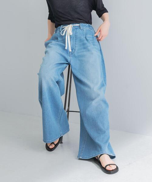 柔らかく伸縮性のあるリネン混素材を使用したデニムパンツ。 明るいブルーにヴィンテージライク風合いが、これからの季節にぴったり。 ルーズなシルエットにフロントのタックが、着心地の良さと体型カバーを両立します。 ウエストの白の紐がアクセントで、サイズ調整が可能。ストレスフリーな穿き心地も魅力です。 身長別で選べる3サイズ展開も嬉しいポイント。 シアー素材のトップスを合わせると、トレンドのスタイリングを楽しめます。ジャケットとの相性も抜群。足元はきれい目なシューズや、華奢なサンダルがおすすめです。 POINT ・柔らかく、着心地の良いリネン混素材 ・ストレスフリーなウエストゴム仕様 ・選べる3サイズ展開 【2025 Spring/Summer】【25SS】 ※この商品は、染色の特性上、着用中の摩擦や汗などにより他の衣類や下着、淡い色のベルトやカバン、ソファーなどに色移りすることがあるので、コーディネートや取り扱いにご注意ください。 ※下着などは、同系色の着用をおすすめします。 ※その他お取り扱いに関しましては、商品に付属のアテンションタグをご覧ください。 ※商品画像は、光の当たり具合やパソコンなどの閲覧環境により、実際の色味と異なって見える場合がございます。予めご了承ください。 ※商品の色味の目安は、商品単体の画像をご参照ください。 ----------------------------- 《スタッフレビュー》 [スタッフA] 20代後半、身長 : 165cm、体型 : 普通 普段の着用サイズ : M, L パーソナルカラー : ブルベ夏 【着用カラー/サイズ】L.BLUE / 38 【サイズ感・着心地】柔らかな生地感とゆとりのあるシルエットがとても楽チンでした!ヒップ・太もも周りも気にならずに着用することができました◎165cmで38サイズちょうどいい丈感で、ルーズに穿くなら40サイズを合わせたいです。 ----------------------------- ▼お気に入り登録のおすすめ▼ お気に入り登録商品は、マイページにて現在の価格情報や在庫状況の確認が可能です。 お買い物リストの管理に是非ご利用下さい。 素材感 透け感 : なし 伸縮性 : あり 裏地 : なし 光沢 : なし ポケット : あり 36
