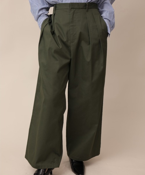 ツータックのワイドスラックス。ボリュームのあるワイドタイプで脚のラインを拾わず、ツータックできれいなラインを見せてくれます。ウエストは後ろがゴムになっていて楽ちん。両サイドにポケットがありとても便利。※メンズアイテムをウィメンズモデルが一部着用しております。【マルチサイズとは】豊富なサイズ展開のため、「骨格ストレート/骨格ウェーブ/骨格ナチュラル」など様々な体型の方も、自分に合った1枚が見つかる新しい洋服の買い方です。「低身長~高身長」「やせ型~ぽっちゃり」など小さいサイズから大きいサイズまで、最大56サイズご用意しています。定番アイテムから、ビッグシルエットなどのトレンドアイテムまで幅広く展開中!※マルチサイズは、ZOZOTOWNのみでのお取り扱いになります。※サンプル品で撮影しているため、ボタンやファスナーなど一部の仕様が若干異なる場合がございます。【注意事項】この商品はご注文を受けてから生産を行う受注生産商品のため、発送までにお時間をいただきます。カート投入後の画面にて発送日の目安が表示されますのでご確認ください。
