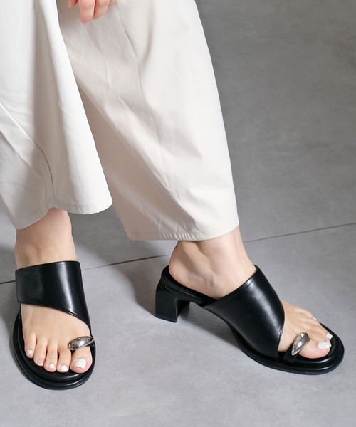 ◆◇◆◇2025春夏新作◆◇◆◇トレンドのサムリングにクールな変形ヒールが大人モードな1足アッパー裏はふかふかクッション入りで足当たりも柔らか5cmの変形ヒールは安定感も抜群で歩きやすくなっています。包みこまれるような柔らかさで夏のお出かけも快適に歩けます。=============【S】⇒ 22.5cm~23.0cm【M】⇒ 23.0cm~23.5cm【L】⇒ 23.5cm~24.0cm【LL】⇒ 24.0cm~24.5cmヒール高 5cm片足重さ 約205g(計測サイズ:M)=============【スタッフ着用コメント】●みゆ普段サイズ22.0~22.5cm<エジプト型>足幅:やや細め(C)、甲高:標準的足長:21.5、足囲:20.4、甲周り:20.5、足首周り:20.5素足着用S⇒かかと少し余りますがサンダルなのでそんなにも気にならないです。【足幅】程よくゆとりあり【足長】1cm程余る●ロビン普段サイズ22.5cm<エジプト型>足幅:やや広め(2E)、甲高:標準的足長:21.8、足囲:22.0、甲周り:22.1、足首周り:19.0素足着用S⇒かかとがきれいにおさまり、甲幅はゆったり履けます。【足幅】ゆとりあり【足長】ぴったり●ゆき普段サイズ22.5~23.0cm<エジプト型>足幅:細め(B)、甲高:標準的足長:22.5、足囲:20.4、甲周り:20.8、足首周り:20.5素足着用S⇒ほどよくゆとりもって履けます。ストラップが緩いですが、インソール等で調整すればちょうどよく履けそうです。【足幅】指一本ゆとりあり【足長】ちょうど●ゆみこ普段サイズ23.5~24.0cm<エジプト型>足幅:細め(B)、甲高:低め足長:23.8、足囲:21.7、甲周り:22.0、足首周り:20.0素足着用M⇒かかとの丸みが出て小さめでした。【足幅】ぴったり【足長】小さめL⇒長さは足がぴったり収まるサイズ感です。親指リングも緩すぎず丁度良いです。安定感があり歩きやすいです。【足幅】丁度良い【足長】ぴったり●イッチー普段サイズ24.0~24.5cm<ギリシャ型>足幅:やや広め(2E)、甲高:標準的足長:23.8、足囲:23.5、甲周り:23.2、足首周り:21.8素足着用L⇒かかとが少し出ます。【足幅】ややぴったりめ【足長】かかと少し出るLL⇒ちょうどぴったりで履けました。【足幅】ちょうどいい【足長】ちょうどいい●りな普段サイズ24.5cm<ギリシャ型>足幅:やや細め(C)、甲高:標準的足長:24.3、足囲:22.5素足着用L⇒かかとが少しだけ出ますが許容範囲です。【足幅】ぴったり【足長】かかとが少し出るLL⇒程よい余裕をもって快適に履けます。【足幅】程よい余裕【足長】ちょうどいい●みき普段サイズ24.5cm<エジプト型>足幅:やや細め(C)、甲高:低め足長:24.3、足囲:21.0、甲周り:21.0、足首周り:20.3素足着用L⇒長さが足りず、つま先とかかとの丸みがでます。【足幅】ちょうど【足長】小さいLL⇒LLサイズも長さが少し小さく、かかとの丸みがでますがサンダルなので許容範囲です。【足幅】ちょうど【足長】少し小さい【キーワード】サンダル 痛くない 疲れない サムリング 変形ヒール 5センチヒール 歩きやすい レディース 履きやすい 太ヒール ブラック ブラウン シルバー 柔らか ミュールサンダル ソフト 黒 メタルパーツ Lelien plus ルリアンプラス トゥリング【注意事項】インソールのロゴは入荷時期によって入っているものと入っていないものがございます。お選びいただくことはできません。