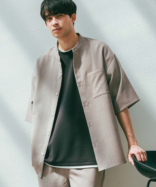 春夏にも着やすい薄手の生地を使用したトップス。 バンドカラーで顔周りがすっきり見えます。 ニュアンスカラーでリラックス感のある着こなしが楽しめます。 【素材】 麻のような表面感のある素材。 べたつかないさらさらとした肌触り。 【スタイリング】 シンプルなデザインなので着回し抜群。 同素材のボトムと合わせてのセットアップスタイルもおすすめ。 ▼同素材のパンツはこちらブランド品番:321089 ZOZO商品コード:92943442