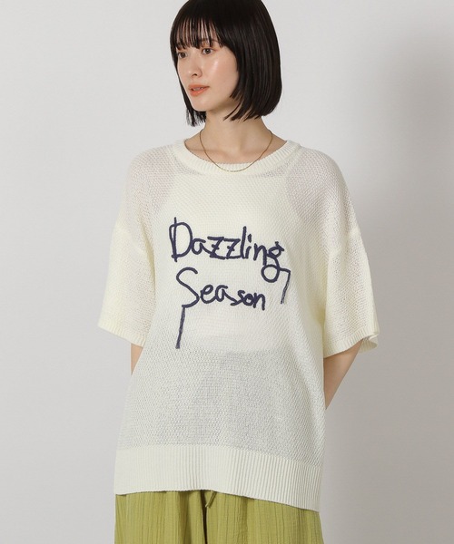 フロントのロゴ刺繍がポイントのニットプルオーバー。 身頃や肩回りにゆとりのあるゆったりとしたシルエットでリラックス感のある着心地の1枚です。 【素材】 柔らかくやや透け感のあるアクリル100%のニット素材。 【スタイリング】 カジュアルなアイテムとの相性〇 オーバーシルエットなのでルーズなスタイリングをお楽しみいただけます。