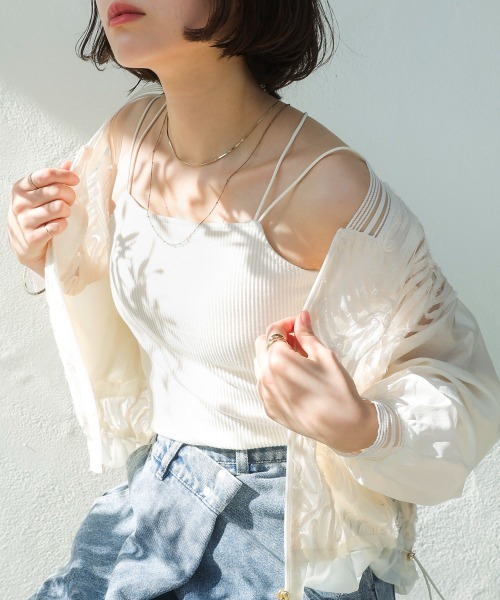 ■POINT定番のブラトップを春色カラーで展開。リブ生地で収縮のある素材を使用したブラトップ。肩紐が2本、背中はクロスになったデザインになるので、肩からずれにくく安定感のある仕様になります。シアー素材のインナーに透けても下着には見えないデザインがうれしいブラトップ。アンダーバスト部分には強めに平ゴムが入っているので、バストのホールド感もあり安心して着用して頂けます。■FABRICニュアンスカラーのリブ素材を使用。肩紐はゴム素材を使用。■COORDINATEシャツやブラウスのインナーなどにオススメです。…………………透け感:なし裏地:なし…………………★商品のお気に入り登録 登録すると、完売しても再入荷時に通知を受け取ることができます。 ほかにもお得な特典があるかもしれません♪ ★ブランドのお気に入り登録 新商品や再入荷などの情報を受け取ることができますので、是非ご登録ください♪