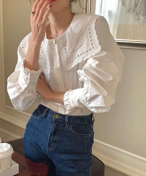 【レース刺繍 ビックカラーシャツ】 360度どこから見てもかわいい!! コーデの主役になるブラウス♡ ▷ POINT ・肩のラインを拾う大きめ襟 ・フロントは開閉可能なボタン仕様 ・コーデの主役になるビックカラーシャツ ・シンプルな白ブラウスで着回し力抜群 ・360度どこから見ても可愛いシルエット ▷ COORDINATE ビックカラーとレース刺繍が目を引く 360度どこから見てもかわいいシルエットの ブラウスが入荷しました♡ 肩のラインを拾う大きめ襟で小顔効果や ふんわりしたボリュームのある袖は 気になる二の腕をカバーできます♡ 1枚で着るのはもちろん重ね着でも使えるので ワンピースやカーディガンからフリル襟を出して レイヤードコーデにもおすすめです。 ▷ COLOR ・ホワイト ▷ MODEL 160cm ___________________ ▫ Information 【♥】アイテムをお気に入り( カートの右のハートをクリック ) お気に入りアイテムの値下げ、再入荷通知在庫1点などの通知を受け取ることができます 【♥】ブランドをお気に入り( 上部のブランド名をクリック ) 新商品や再入荷、クーポン配布などセールの通知を受け取ることができます ▫ shopnikoniko ショップにこにこは韓国ファッションを中心にトレンドアイテムがプチプラで揃うレディースアパレルショップ ▫ Instagram ショップにこにこのアイテムを使ったコーデはインスタ( @shopnikoniko )をチェック __________________ レディース 韓国 プチプラ 流行り トレンド 人気 おすすめ おしゃれ かわいい シンプル 韓国カジュアル 韓国ガーリー フレンチガーリー 淡色女子 オフィス 春 夏 秋 冬 トップス 長袖 襟付き ピーターパン襟 セーラーカラー レース襟 袖フリル 体型カバー 二の腕カバー レイヤード 入学式 入園式 卒業式 卒園式