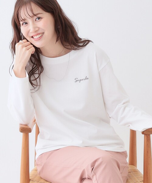 綿100%のベーシックロンT 【デザイン】 ボートネックでお顔まわりをすっきり見せてくれる一枚。 肩が少しドロップしているので、こなれ感を演出してくれます。 ボーダー3色、無地3色の展開で、無地は胸元にワンポイント刺繍が入っています。 1枚で着てもサマになるデザインが魅力です。 【スタイリング】 一枚でゆるTとして着ていただくのはもちろん、上にカーディガンを羽織ったり、 ジャンドレやキャミワンピースなどのインナーとしても活躍します。 パンツ、スカートなどどんなボトムともバランス良く着ていただけるので、色々な着こなしをお楽しみいただけます。 【素材】 綿100%の素材をエンザイム加工を施した表面感がキレイな素材を使用しています。 ※照明の関係により、実際よりも色味が違って見える場合があります。また、パソコン・スマートフォンなどの環境により、若干製品と画像のカラーが異なる場合もございます。 モデル情報:身長168cm B82 W59 H85 着用サイズ:02(M) 店舗へのお問い合わせ商品番号:741-12322 ●製品寸法: 01(S):着丈59cm B94cm 袖丈45cm 肩幅47cm 02(M):着丈61cm B97cm 袖丈46cm 肩幅48cm 03(L):着丈63cm B100cm 袖丈48cm 肩幅49cm 04(LL):着丈66cm B104cm 袖丈50cm 肩幅50cm 備考: