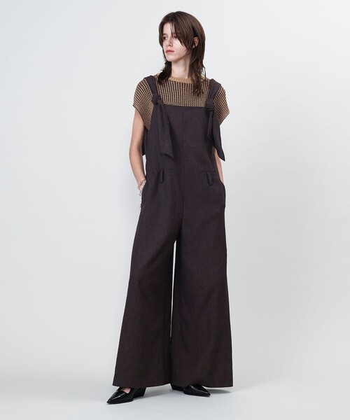 シンプルながらも肩紐のリボンがアクセントになったオールインワン。 ■デザイン 肩紐の太めリボンは縛って調節することができ、デザインポイントにもなるパンタロンサロペット。 裾にかけて広がったシルエットはボディーラインを美しく演出してくれます。 ■素材 ラスティックな質感が特徴的なポリエステルコットン麻混素材を使用。 やわらかさと独特なシャリ感をあわせ持った肌触りが魅力です。 ■コーディネート ニットやカットソーにレイヤードしたり、インナーなしでジャケットやカーディガンを羽織るコーディネートも楽しめます。 ============================ 裏地:なし 透け感:なし 伸縮:なし 光沢感:なし ケア方法:ドライクリーニング ============================ 【注意事項】 ※商品を使用前に、タグ等に記載されている「取り扱い上の注意書き」、「洗濯表示」を必ずご確認ください。 ※商品画像は、光の当たり具合やパソコンなどの閲覧環境により、実際の色味と異なって見える場合がございます。あらかじめご了承ください。 ※商品の色味の目安は、商品単体の画像をご参照ください。 ※画像の商品はサンプルです。実際の商品と色味、仕様、加工、サイズ、素材等が若干異なる場合がございます。 店舗へお問い合わせの際は、全国のASTRAET各店舗まで下記の品名/品番をお申し付けください。 品名:AS P/C/LI DUNG RBN ALONE 品番:54262990284