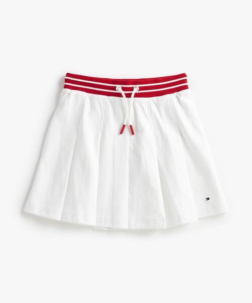 GIRLS プリーツニットスカート 幅広プリーツで動きを出したニットスカート。ウエストバンドのストライプ柄が、トップスをタックインした際のアクセントになってくれます。生地はストレッチ性があり、ストレスフリーなはき心地。左裾にはブランドのメイングラフィックでもあるフラッグロゴのワンポイント刺しゅうがあしらわれています。 【TOMMY HILFIGER】 永遠のアメリカンクラシックをベースにモダンなひねりを加えたデザインが人気のトミーヒルフィガー。都会的で洗練されたメンズ・ウィメンズに加え、チルドレン、ゴルフライン、そしてよりカジュアルなデニムラインと豊富なカテゴリーが揃うグローバルブランド。