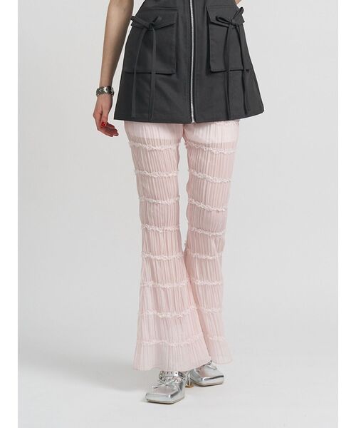 【ポイント】今年の春夏に1枚は持っておきたい、シアー素材のロングパンツ!贅沢にギャザーが入っているので、取り入れるだけでベーシックなスタイリングもアップデートしてくれるおしゃれ見えアイテムです。インナーパンツが付いているので安心して着用できるのも嬉しいポイントです。程よいフィット&フレアシルエットで脚長効果も抜群です。【スタイリング】ゆるっとルーズなBIGTシャツ合わせでカジュアル×ガーリーなMIXスタイリングがかわいい!トレンド感MAXなスカートレイヤードスタイルもおすすめです。※ブラック、ピンクのインナーのパンツ丈が4cm短くなります。※着用画像はフラッシュの加減で実際の製品と色味等が異なる場合がございますので、生地のズームアップ画像をご確認ください。※ご利用の端末画面の設定により実際の商品と色味が異なる場合がございます。※正しいサイズはアイテムサイズ表をご確認ください。※商品のお取り扱いについては、脇についている洗濯ネーム類をご確認下さい。【jouetie ZOZOTOWN お買い物ガイド】▼商品をお気に入り登録!♡をクリック!完売商品の再入荷やラスト1点の通知、セール開始時にお知らせ!▼"jouetie(ジュエティ)"をお気に入りブランドに登録!新商品や再入荷など、ブランド最新情報をいち早くお知らせ!