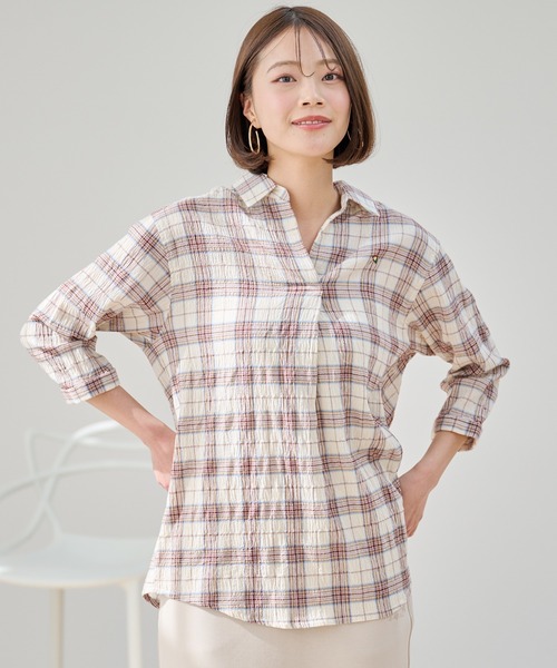 首元をすっきりと見せてくれるスキッパーシャツ。腰回りをカバーできる長めの丈感と、これからの季節に嬉しい7分袖がポイントです。シボ感のあるさらりとした肌触りのチェック生地を使用し、大きめのチェック柄が華やかな印象をプラス。ややAラインのシルエットで、様々なボトムスと相性良く着こなせます。テーパードパンツと合わせればバランスの取れたスタイルに、ワイドパンツと合わせると旬の着こなしが完成します。 【Arnold Palmer/アーノルドパーマーについて】 『家族のカタチ』『繋がるキモチ』『変わらないカチ』若い人も、夫婦も、お年寄りも、お子さまも、 世代を超えてライフスタイルに寄り添える、元気で遊び心のあるファッションを。 シンプルだけど機能的、日常をより便利に、快適に、みんながハッピーに、幸せな毎日を過ごせるように。 わたしたちは、時代を超えても『価値』のあるモノづくりを追求し続けます。 ▼商品のお気に入り登録 再入荷通知や、ラスト1点、セールの通知をお知らせ致します。 ▼ブランドお気に入り登録 新作アイテムや再入荷など、いち早くブランドの最新情報をお届け致します。