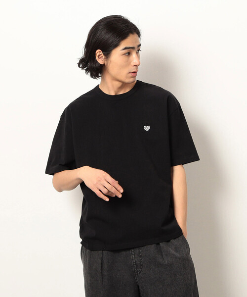 《デザイン》左胸にハートの刺繍をいれた半袖Tシャツです。ブランドロゴをハートのモチーフにアレンジしたチャーミングなアイテムです。ワンポイントのロゴなので合わせるアイテムを選ばずに着回し出来る汎用性の高い逸品です。シンプルなデザインなので男女問わず着ていただけます。《素材》20/-空紡天竺空紡糸もしくはオープンエンド糸(OE糸)と呼ばれる糸を使用した天竺素材です。空紡糸とは、その名の通り空気の渦の力によって撚られた糸のことです。糸に掛かる撚りが内側から外側に掛けて徐々に強くなっていくため、表面はシャリ感のあるやや硬めの風合いになり、内側にふっくらとしたボリュームがでるのが特長の糸になります。それにより、ドライタッチでザックリとしたナチュラルな硬さのある風合いの素材に仕上げてます。裏地:無し伸縮性:有り光沢感:無し生地の厚み:普通※画像の商品はサンプルとなりますので実際の商品と仕様、加工、サイズが若干異なる場合がございます。※こちらの商品はFIVE FOXes独自の採寸方法となっています。本サイトのサイズガイドと採寸方法が異なる場合がありますのでご了承ください。