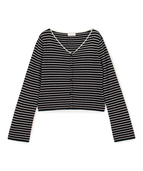 総針の組織をベースにランダムに表針抜きを入れることで凹凸をつけ、リブのような表情に仕上げたニットシリーズ。 別素材のレーヨンでラインを入れ、〈Ballsey〉らしい品の良いボーダー柄を作り上げています。 カーディガンはやや横に広いVネックにフィット感のあるシルエット、少し広い袖口の仕様で、クリーンな表情ながら女性らしさも感じる一着に仕上げました。 トレンド感のあるショート丈でワンピースやボリュームのあるボトムスとも相性が抜群。 ミニマルなデザインで、オンオフ問わずに幅広いスタイリングで活躍してくれるアイテムです。 ※商品の色味は、商品単体または素材アップ画像をご確認ください 2025SS商品 店舗にお問い合わせの際は、下記の商品番号をお申し付けください。 商品番号:11-02-52-02205 ※※ご自宅でのお洗濯の際は、洗濯方法を十分ご確認の上、やさしい手洗いをお願いいたします。