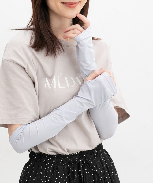ひんやり快適『ハニさら』アームカバー 【デザイン】 手の甲までしっかりガードする指穴付きデザイン。 手軽にさっと着けられる40cmタイプ。 【素材・機能】 サラッとした素材。 ひんやり快適な『接触冷感』と、水で濡らすとひんやり感がアップする『吸水冷感』、気になる菌やにおいにも安心の『抗菌防臭』、紫外線対策ができる『UVカット』の機能が付いた『ハニさら』アイテム。 【スタイル】 野外イベントやアウトドアにはもちろん、お散歩や通勤通学にも、毎日大活躍◎ ※湿度・摩擦により多少色落ちする可能性があります。 品番:270-160-9127