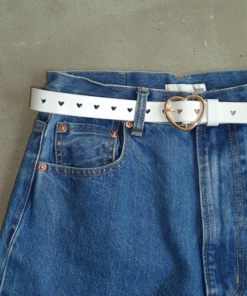 ハート形のベルト穴とバックルがポイント ●Design ・丸みのあるハートバックル ・ぐるっと一周ハート穴デザインで、ウエストに合わせて自由にサイズ調整可能 ・バックルは高強度のアルミ合金に電鍍加工を施しているため、耐摩耗性にも優れ耐久性◎ ・ベルトには厳選された一枚革を使用し、丁寧な研磨でなめらかで毛羽立ちのない上質な仕上がりに。 ・縁のコバ塗り加工で優しい手触りに仕上げ、衣類を傷つける心配なく快適に使用可能。 ●Styling コーディネートのアクセントになる本革デザインベルト。 細すぎず太すぎない絶妙な幅感で、パンツやスカート、ワンピースなど幅広いスタイルにマッチ◎ シーズンを問わず、一本持っておくと便利なアイテムです。 ▽商品のお気に入り登録完売カラーの再入荷通知やラスト1点の通知 プライスダウンの通知も受け取ることができます。 ▽ブランドのお気に入り登録 新商品や再入荷など、 ブランドの情報をいち早くお知らせします! ぜひご登録ください◎ ※ご注意※ ・屋外の光や照明の当たり具合で、実際の商品の色味と カラー別画像の色味に若干の違いが発生する場合がございます。 ・詳細画像と併せてご確認の上、ご注文いただきますようお願い致します。 --------------------------------------------------------------- idem / イデム 「日々の恋人」うららかな朝。 窓辺から溢れるコットンのような光。 私に纏い、寄り添うあの子はどうしよう。 あなたの生活の隣、そっと包んで、愛して ※他のキャンペーンにより、期間中に価格が変動する場合があります。 ※セールは予告なく終了させていただく場合もあります。 ※ご注文いただいた予約商品のお届け時期の確認は、注文履歴ページより行えます。