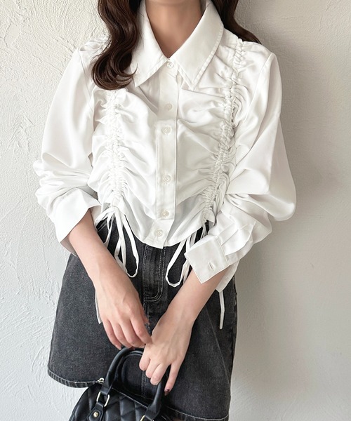 ◆推し活にもぴったりなトレンドのドロストシャツ♡裾のドロスト具合はご自身で絞って調節いただける仕様です。お袖はややボリューム感あるシルエットでカジュアルすぎず、フェミニンなスタイルにもお使いいただけます!前ボタン仕様なので開けでも閉めでも着用可能◎ストライプ柄は細めの程よいストライプで合わせやすいカラー展開。デニム合わせでカジュアルコーデにも、ミニスカ合わせで甘めコーデもおすすめです♩◎素材オフホワイト・ブルー・ライトイエロー…ポリエステル100%ピンク系その他・ブルー系その他…ポリエステル65%,綿35%【商品画像コーデ】オフホワイト:デニムミニスカート(311940)ブルー:ベルト付きトレンチスカパン(313083)ブルー系その他:3段ティアードミニスカート(322512)---------------------------------------透け感:ややあり伸縮性:なしドロスト:調節可能---------------------------------------※ご覧のモニター環境や撮影環境により実際の商品と多少色味が異なって見える場合がございます。ご理解の程よろしくお願いいたします。【お買い物をよりお楽しみいただく為に♪】▼商品のお気に入り登録をおすすめします♡をクリック!完売カラーの再入荷や、ラスト1点の通知、セールの際の通知を受ける事ができます。ブランドのお気に入り登録もご一緒にお願い致します。