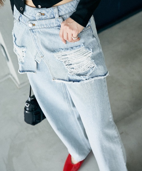 PUBLUX ONLINE LIMITED →EC限定:店頭展開のない限定アイテムです。 2025 Spring & Summer item 1枚で旬コーデ!ルーズさとこなれ感が可愛いラップデニム ●スカートとパンツをレイヤードしたようなデザインがお洒落な1着●ワイドストレートのシルエットで美脚見えも叶います!●前腿の部分に巻きスカートのようなディテールが付いているので、太もものラインがカバーできます。●ラップ部分にはダメージが入っており、抜け感とこなれ感があります。●春夏にぴったりの淡いサックスブルーと、どんなアイテムとも相性抜群のブルーの2色展開 ========== ◆おすすめコーディネートベーシックなTシャツと合わせるだけでトレンド感のあるお洒落なスタイリングが出来るアイテムです。トップスの前をインするだけで、いつものカットソーやシャツを新鮮に見せてくれます!クロップド丈や、ジャストフィットのトップスとは相性抜群◎綺麗めコーデの外しアイテムにもおすすめです。 --- ※商品の色味は、商品詳細画像をご確認ください。 ※掲載画像の商品の色味は、屋外や屋内の光の照射や角度により実物と色味が異なる場合がございます。また表示のサイズ感と実物は若干異なる場合もございますので、予めご了承ください。 ※着用、お取り扱いの際は、商品についている品質表示とアテンションタグを必ずご確認下さい。【PUBLUX/パブリュクス】その瞬間を大切に、なりたい自分になれたら。いま着たいリアルクローズを自由な感性で提案する、ジェンダーレスなストリートブランドです。