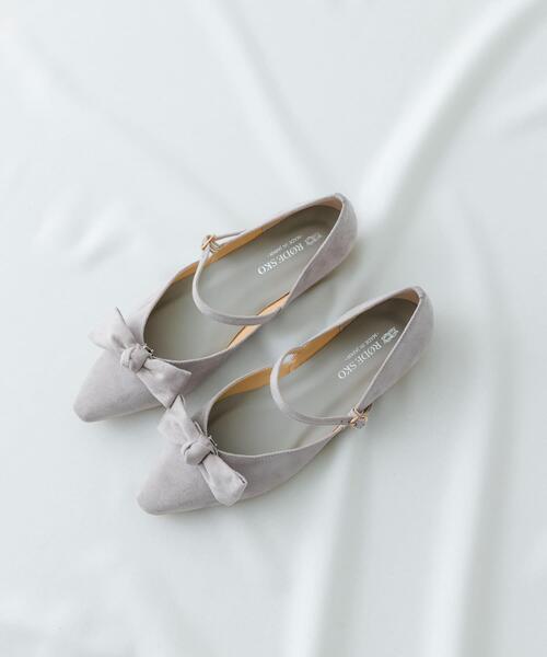 PINK BEIGEはWEBと一部店舗での取り扱いです。5通りのバリエーションで楽しめるリボンパンプス【Material】アッパーにはポリエステル素材、ソールには合成底素材を使用【Design】色違いのリボンがセットになったマルチサンダル。取り外し可能なリボンをつま先・ベルトなどお好みの場所に装着が可能。ベーシックなデザインなのでリボンを外し、お仕事シーンでも活躍いたします。アッパー部分の切り替えがある事で甲幅の余裕が生まれゆったりとした履き心地になっています。【Color】PINK BEIGE,MILK,GRAY,BLACKの4色展開【Styling point】スラックスなどのパンツスタイルからきれいめなワンピーススタイルまで幅広いシーンで活躍いたします。【2025 Spring/Summer】【25SS】※サイズ詳細は、当社が独自で計測したサイズです。予めご了承ください。※靴箱破損につきましては、商品に不良が無い場合に限り出荷させていただいております。予めご了承ください。※この商品は、水分や摩擦等により色落ちする恐れがあります。特に薄い色の衣類を着用の際はお気をつけください。※その他お取り扱いに関しましては、商品に付属のアテンションタグをご覧ください。重量(片足) : 約190g※商品画像は、光の当たり具合やパソコンなどの閲覧環境により、実際の色味と異なって見える場合がございます。予めご了承ください。※商品の色味の目安は、商品単体の画像をご参照ください。-----------------------------《スタッフレビュー》試着サイズ : 36 / 37薄手の靴下を履いて36を着用したところ、足長はぴったりなサイズ感でしたが、甲幅は窮屈に感じました。37だと足長が大きすぎる印象でした。ソールにもクッションが入っている為、長時間着用しても疲れにくそうだと感じました。[スタッフデータ]普段の着用サイズ : 23.5~24.0cm足長 : 23cm足囲 : 22cm足幅 : 普通※履き心地には個人差がございますので、あくまでも目安としてご覧ください。-----------------------------▼お気に入り登録のおすすめ▼お気に入り登録商品は、マイページにて現在の価格情報や在庫状況の確認が可能です。 お買い物リストの管理に是非ご利用下さい。