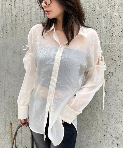 袖のリボンとカッティングがポイントのシアーシャツ! ■POINT 袖のリボンとカッティングがポイントのシアーシャツです!オーバーサイズで、厚い時期でもさらっと羽織ることができます。 ■STYLING インナーにキャミソールやタンクトップなどを合わせると、程よい肌見せ効果があり抜け感が出ます。 デニムなどはもちろん、Iラインのスカートなどとの相性も良いです。 ■FABRIC 少しキラッと光るオーガンジー生地を使用しています。夏場も涼し気に着用できます。 ・透け感:やや透ける ・伸縮性:なし ・生地の厚さ:普通 ・裏地:なし ※こちらは参考情報となります。カラーにより多少の誤差がございます。 ■お手入れについて 洗濯:手洗い可 タンブル乾燥:不可 漂白:不可 自然乾燥:日陰のつり干し アイロン:120℃まで可 クリーニング:可 ※詳細は製品のタグ情報をご確認ください。 ーーーーーーー < FOREVER21/ CONCEPT > 新しい価値観を表明するコミュニケーションテーマは「Wear No Filter」 '一人一人のリアルを、美化したり、ぼかしたりすることなく、着ることでむしろ、その人らしさが裸になっていく。 そのままを映し出すこと。それらが最も魅力的だと信じる、FOREVER21の合言葉。” 新生FOREVER21は、様々な現代的な価値観へのリスペクトと共鳴を、様々なクリエイションに表現していきます。 気になる商品は「お気に入り」登録がおすすめ! お気に入り登録商品は、マイページにて現在の価格情報や在庫状況の確認が可能です。 お買い物リストの管理に。是非ご利用ください。 【注意事項】 ※実際の商品と色味、仕様、加工、サイズ、素材等が若干異なる場合がございます。 ※商品を使用前に、タグ等に記載されている「取り扱い上の注意書き」、「洗濯表示」を必ずご確認ください。 ※商品画像は、光の当たり具合やパソコンなどの閲覧環境により、実際の色味と異なって見える場合がございます。予めご了承ください。 ※商品の色味の目安は、商品単体の画像をご参照ください。