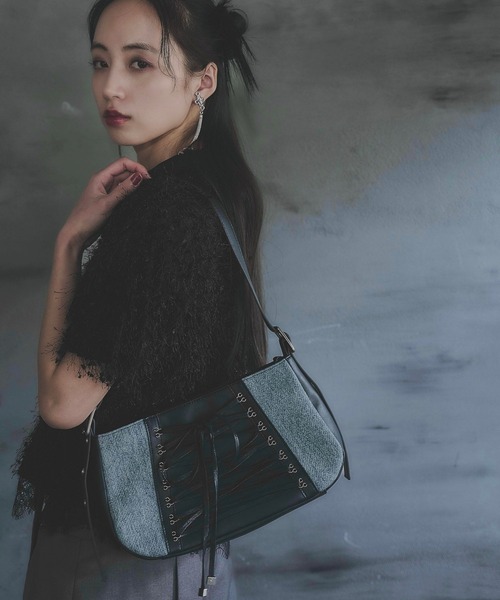 ーーーデニムとレースアップデザインがポイントのショルダーバッグーーーpoint□デニムMIXの素材感で、トレンドのモードカジュアルなアイテム□レースアップデザインは、レザー合わせで甘すぎない印象に□持ち手部分はベルトで調節可能な仕様styling今年らしいデザインの為、デニムのカジュアルスタイルからオールブラックのモードスタイルまでどんなスタイルにも相性抜群です◎※加工を施した画像を使用しております。実物と色味が異なる可能性があるため、色味は詳細後ろにある生地寄り画像を参考にお願いいたします。あらかじめご了承下さい。