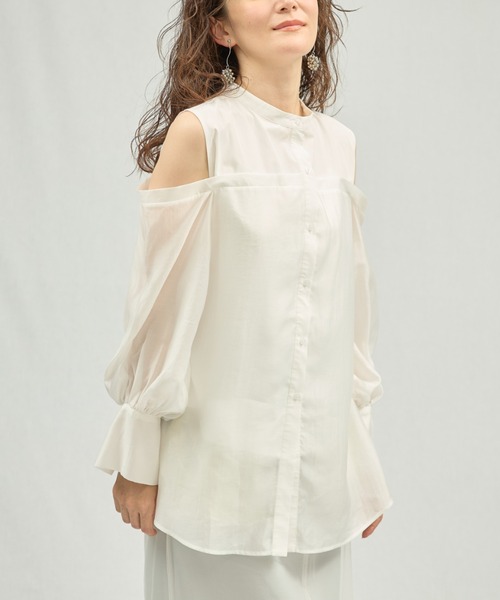 -25SS|DOLLUPOOPS- 【Material】 ドレープ感のあるシアー生地とハリのあるポルリン生地をレイヤードドッキングさせた生地。清涼感がありながらポプリンの良さである耐久性が魅力です。 【Design】 オープンショルダーが特徴的なブラウスは、シアーをドッキングさせレイヤードされたデザインとなっています。抜け感があるフェミニンな印象に、ダブルカフスにノーカラーとモダンな印象も覗かせています。 【Size】 シアーはAラインなシルエットですが、表地はシェイプさせメリハリのあるシルエットです。オープンさせたショルダーは視覚的に抜け感もありレイヤードデザインでも重たく見えない印象です。 【Styling point】 存分にレイヤードを活かしたスタイリングでも存在感があります。ボトムスインしてスッキリ見せたシルエット作りも◎ ____________________________ ★商品のお気に入り登録 完売カラーの再入荷通知や、ラスト1点の通知、セールの通知も受け取ることができます。 是非ブランドのお気に入り登録もご一緒にお願い致します!!! ※画像の商品は光の反射や角度により、実物と色味が異なる場合がございます。 また、表示のサイズ感と実物は若干異なる場合もございますので、予めご了承ください。 ※着用、お取り扱いの際は、商品についている品質表示とアテンションタグを必ずご確認ください。 -DOLLUPOOPS | ドールアップウップス- 【Add a little essence】ライフスタイルの多様化が進む現代変わり続ける今をとらえ、 自分らしい感性を大切にする女性に向けて " より美しく" 毎日を" 彩る" ワードローブを。 日常に調和しつつ、" 普通 " に少しだけエッセンスをたして、他にない特別な一品を提案します。 -Instagram- 公式インスタグラム【dollupoops.tevalt_official】 ※商品のサイズ感やご質問は【dollupoops.tevalt_official】のインスタアカウントDMにて 承っております。お気軽にご相談くださいませ。