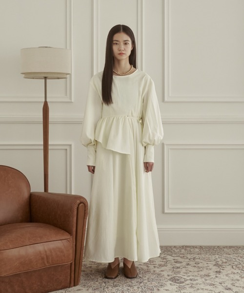 表面感のある楊柳の素材で、一枚でさらっと着用できちゃうワンピース。袖付きなのも季節感問わず使用できるうれしいポイント。ウエストのフリル調アシンメトリーデザインがかわいらしいアイテムです。ウエストには紐が付いているので、ウエストマークとして縛るのも良し、紐を垂らしてアクセントにするも良しお好みのシルエットにご調整いただけます。袖口のカフスを長めの設計にすることで、袖のボリューム感も特徴的。クルーネックの首回りは開き過ぎておらず、裏地付きなので一枚でコーディネートが完成するデザインです。ブランド一押しのワンピースでSとFREEサイズの2サイズ展開となっております。director たかあしあかり/髙芦あかり*商品のお気に入り登録*完売カラーの再入荷通知や、ラスト1点、セールの通知をお知らせ致します。*ブランドのお気に入り登録*新商品や再入荷など、いち早くブランドの情報を受け取ることができます。