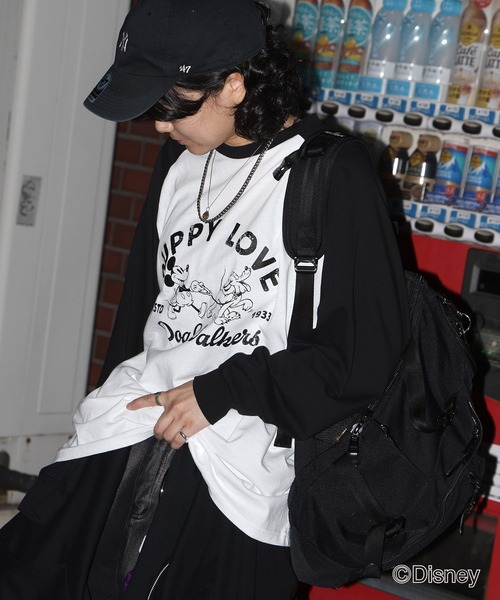 【新色追加】 Disney Mickey / ミッキー ヴィンテージライク レトログラフィック 古着風クラックプリント ビッグシルエット ラグランロンT カットソー メンズ レディース