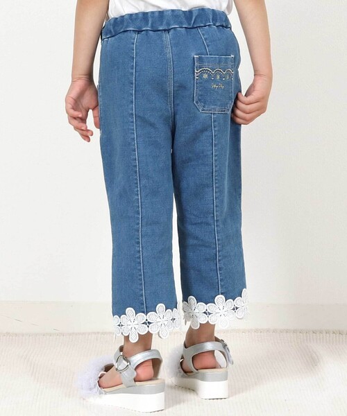 カジュアルになりがちなデニムアイテムをSLAPSLIPらしくキュートにアップデート!裾にほどこしたお花のフリルがとってもかわいいアイテムです。後ろのポケットにはさりげなくきらめくラメ糸で刺しゅうをほどこし、細かいところまで可愛いにこだわったデザインになっています。身生地にはデニムニット素材を使用しているのでやわらかくらくちんなはき心地◎フロントのタックがオシャレなポイント。いつものデニムが周りと差のつく1着に大変身☆はくだけでみんなの視線が釘付けになっちゃうかも!?カジュアルにもガーリーにも着こなしやすく活躍の幅が広いアイテム。ウエストはゴム仕様となっており、お子様のお着替えもかんたん♪濃い色のインディゴ(ネイビー)、薄い色のブリーチ(ブルー)の2色展開です。※腰・右後ろポケットあり。2025年春夏女の子アイテム。【2025年 3月のテーマ / &fun】春にピッタリな明るいパステル調のカラーにチェックやデニムをプラスして元気いっぱい!メインにキッズが大好きなモチーフを使用して新生活を楽しめるように◎【2025 SPRING / SUMMER &delightful-楽しい、うれしい、愉快で、快適-】人の感覚に心地いいものや心がはずむもの・・・今らしさを取り入れて快適にファッション楽しめるように永く愛せる商品を展開します。【SLAP SLIP(スラップ スリップ)】~子どもの欲しいをカタチに~ヨーロッパのこどものように子どもらしい今しか着れないナチュラルなかわいさを提案どこか上品で清楚感漂うフレンチカジュアルはいつものコーディネートをさりげなく格上げ
