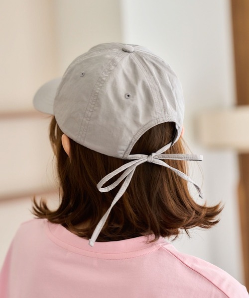 上品な光沢感が魅力♪ ーーー 【素材】 光沢のあるナイロンに細かなシワが入ったようなニュアンスのある生地を使用。 ラメや箔と違いピカピカキラキラし過ぎないシャイニーな生地です◎ 【デザイン】 程よいトレンド感がありながらも、被りやすい生地感が魅力のシャイニーキャップ。 後頭部の細めのリボンは蝶結びにしてデザインのポイントに♪ リボンでサイズの微調整も可能です。 抗菌防臭機能のある汗帯を使用しているのも嬉しいポイント◎ ーーー 【スタイリング】 カジュアルなスタイリングはもちろん、キレイめコーディネートの外しにもおすすめです。