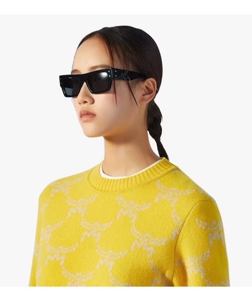 大胆なジオメトリックなデザインの美しさが、ミュンヘンのバイエルンダイヤモンド形のスタッド金具で引き立ちます。アイコニックな月桂樹のエンブレムが立体的に散りばめられたテンプルがひと際目を引き、気高い雰囲気を醸し出します。