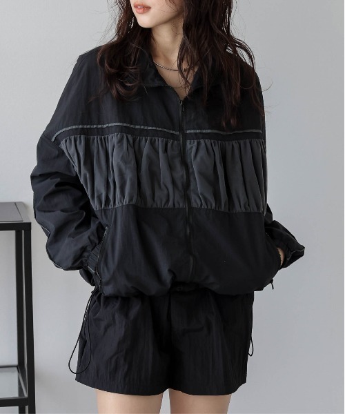 メンズライクなトラックジャケットを 大人可愛くアップデート ワッシャー感のある微光沢のシャカシャカとしたメンズライクな素材に、 ギャザーをよせた、チュールデザインが女性らしいアイテム。 スポーティーになり過ぎず、 カジュアルからモードまで幅広く活躍。 軽やかな着心地で、サラッと羽織れ、 アウトドアなどもオススメです。 Point01 こだわりディテール チュール素材をドッキングしたデザインが 魅力のトラックジャケット。 ドロップショルダーに、スポーツ感をより 高めるパイピングをデザインがアクセント。 袖口ゴム仕様なので腕をまくって抜け感のある スタイルも◎ Point 02 ゆるっとこなれ感 ゆったりしたサイズ感が大人可愛い。 裾のドロストコードでシルエットを 変化でき、フィット感の調整や シル エットの変更が楽しめます。 ■Fabric ワッシャー感のある 微光沢のシャカシャカとした生地 さらりとした、 軽やかな生地感。 --------------------- 透け感:オフホワイトのみ若干あり 裏地:あり 厚さ:普通 伸縮性:なし ---------------------" ▼《お気に入り登録》でお得な情報がいっぱい▼ ・「商品のお気に入り登録」で再入荷通知や、ラストの通知、セール通知も受け取ることができます。 ・「ブランドのお気に入り登録」で新商品や再入荷など、お得な情報を受け取ることができます!