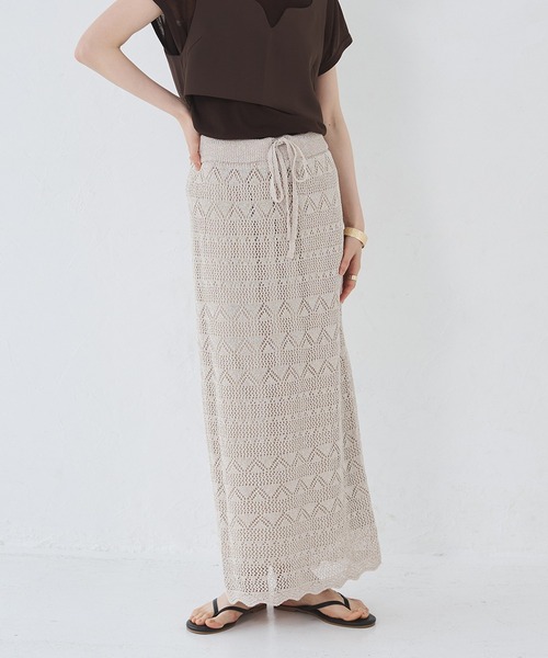 ニュアンス感ある杢カラーのざっくりしたペーパーヤーンで、透かし編みがかわいいスカートを作りました。■商品ポイント 夏場にぴったりな軽さと、大きすぎないオリジナルの透かし柄が主張しすぎず、コーデに華を添えてくれます。ウエストは、ゴムと紐仕様でサイズ調節も可能です。バックスリット入りで足さばきもラクチンです。■素材 通気性抜群で軽量。吸水性が高く、麻に似た風合いで清涼感のある触り心地の良い糸を使用しています。■コーディネートジャケットやGジャン合わせの大人カジュアルスタイルはもちろん、シャツなどと合わせてリラクシ―な大人コーデも◎シンプルな形なので、Tシャツなどとも相性◎とても軽いので、旅行先に持っていくのにも便利です。同素材のペーパーヤーン オーバーニットタンク(WDQ7002)と、セットアップもおすすめです。------------------------------伸縮性:あり透け感:あり裏地:あり------------------------------※お取り扱いについては、商品についている品質表示をご確認下さい。また、モニター・環境等で実際の商品と多少色が異なって表示される場合がございます。予めご了承下さい。- 自分を甘やかす Bitterish clothes -DRESS FOR MYSELFおしゃれに悩まないストレスフリーなスタイルを福岡から提案いたします。フレンチシックカジュアルをベーストレンドをデイリーに取り入れた気軽なウェア。みんなの "ちょうどいい" 服づくりを目指しています。ごきげんな自分に出会える予感。kigocochi iicchan ne A-ne.◆商品のお気に入り登録◆完売カラーの再入荷通知を受け取ることができます。ぜひご登録下さい。◆ブランドのお気に入り登録◆新商品や再入荷など、ブランドのお得情報を受け取ることができます。ぜひご登録下さい。※他のキャンペーンにより、期間中に価格が変動する場合があります。※セールは予告なく終了させていただく場合もあります。