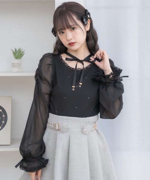 ♡couture BY ROJITA 2025 SPRING COLLECTION♡ 散りばめられたラインストーンで上品さをプラス♪テレコ×シアーの異なる質感のファブリックを組み合わせ、さりげなく表情を加えた1着です。 サテンリボンの先に小さなチャームを飾り、首元もおしゃれに設計◎ アクセ入らずでも十分決まるアイテムです。 ●スタッフおすすめポイント● チョーカー部分の後ろはそのままでもクロスにしても結べる長さになっています♪ 商品のお気に入り登録♪ 完売カラーの再入荷通知や、ラスト1点の通知、セールの通知など商品の情報をいち早くGETできます♪ ブランドのお気に入り登録♪ 新商品や再入荷等、いち早くブランドのお得な情報をGETできます♪ 照明の関係で、実際のお色味と若干異なる場合がございます。 また表示のサイズ感と実物は若干異なる場合もございますので、予めご了承ください。
