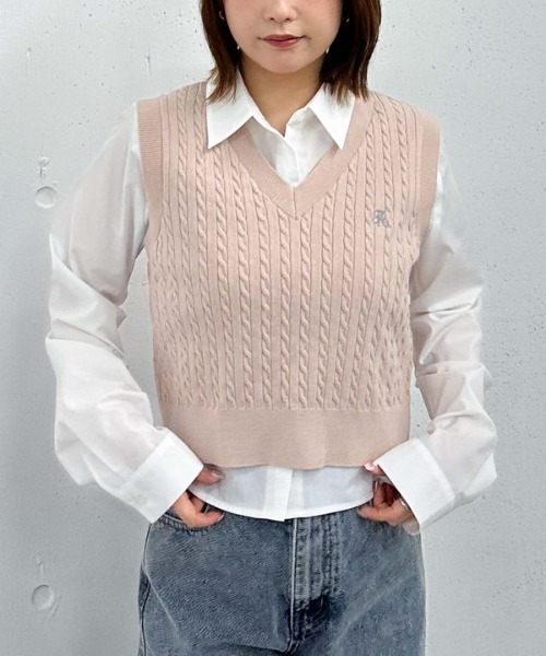 ■春のトレンドアイテム■ 今期トレンドのプレッピーなスタイルが叶うアイテム。 シャツ+ベストのセットでレイヤードはもちろん単品でも楽しめます。 シャツは適度なハリがありベーシックなシルエット。 ベストはケーブル編み+胸元のワンポイントロゴ入り。 シャツの裾はインせずに出すとトレンド感ある着こなしに。 ミニボトムと合わせてスクールライクなコーディネートがおすすめです。 ーーーーーーーーーーーーーーー 透け感:シャツややあり 裏地:なし 伸縮性:ベストあり 光沢感:なし 生地厚さ:普通 洗濯方法:洗濯可 ※詳しいお手入れ方法は商品についているタグをご覧ください ーーーーーーーーーーーーーーー ※ご利用のモニター環境により、実際の色味と多少異なる場合がございます。 … information … 欲しいitemをお気に入り登録(♡マークをclick) ・お買いのがし対策…完売itemの再入荷やラスト1点の情報をお知らせ ・欲しいitemをお得にget…pricedownになったらいち早くお知らせ ・スムーズ検索…ZOZOのお気に入りアイテムページで簡単checkできるから、再検索不要♪