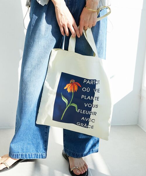 絵を描くように自由に をコンセプトに、 デザイナー自身の描くドローイングを軸に毎シーズンコレクションを展開する「TOLIGHT」とのコラボレーションアイテム。 綿100%のトートバッグに、フラワーをプリントしました。 ナチュラルな風合いと上品なカラー展開で、大人カジュアルなコーデにぴったりのアイテムです。
