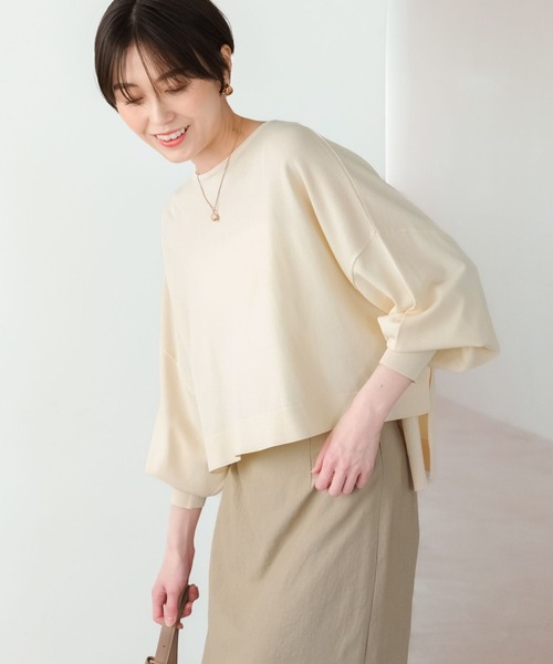 サラサラ質感!人気の多機能素材から新デザインデビュー! 毎年人気のシリーズに、今年らしいショート丈が登場しました。 落ち感がありつつハリと微光沢で高見えするので、 デイリーからオフィスシーンまで使いやすいハイゲージのニットに仕上がりました。 ワイドパンツやハイウエストスカートなどにスタイリングすることで、より今年らしいシルエットが完成します。 ーーー ◆スタイリング ショート丈なのでウエストにデザインのあるパンツとの合わせがオススメです。 マリンパンツに合わせると今年らしいスタイルが完成します。 【素材】 ・接触冷感で夏にも◎ ・キレイ見えする表面感とサラサラ素材で着心地抜群 ・毛玉になりにくくマシンウォッシャブル可能 【悩みに“効く”ポイント】 ・毛玉になりにくくお手入れ楽ちん ・お尻を隠せる丈感で腰回りをカバー ・フロント部分は絶妙なミニマム丈でボトムを選ばない 【気になる商品は「お気に入り」登録を】 ハートマークをクリックし、お気に入りに登録すると 在庫残り僅かの通知や、再入荷通知などの情報を受け取ることができます。